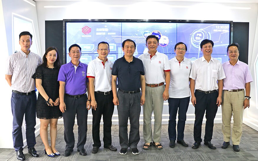 揭阳市市长陈东等向导与优德88最新官网智能董事长孙超等公司高管合影